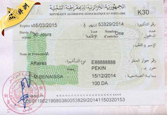• 阿尔及利亚商务签证(贵宾签)