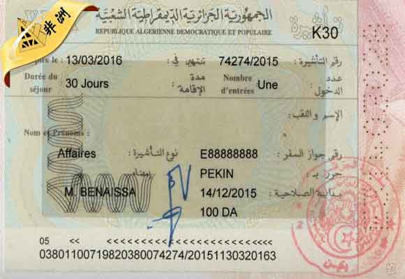 阿尔及利亚民主人民共和国签证问题